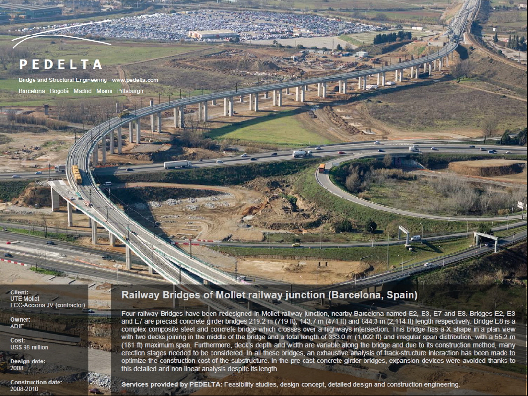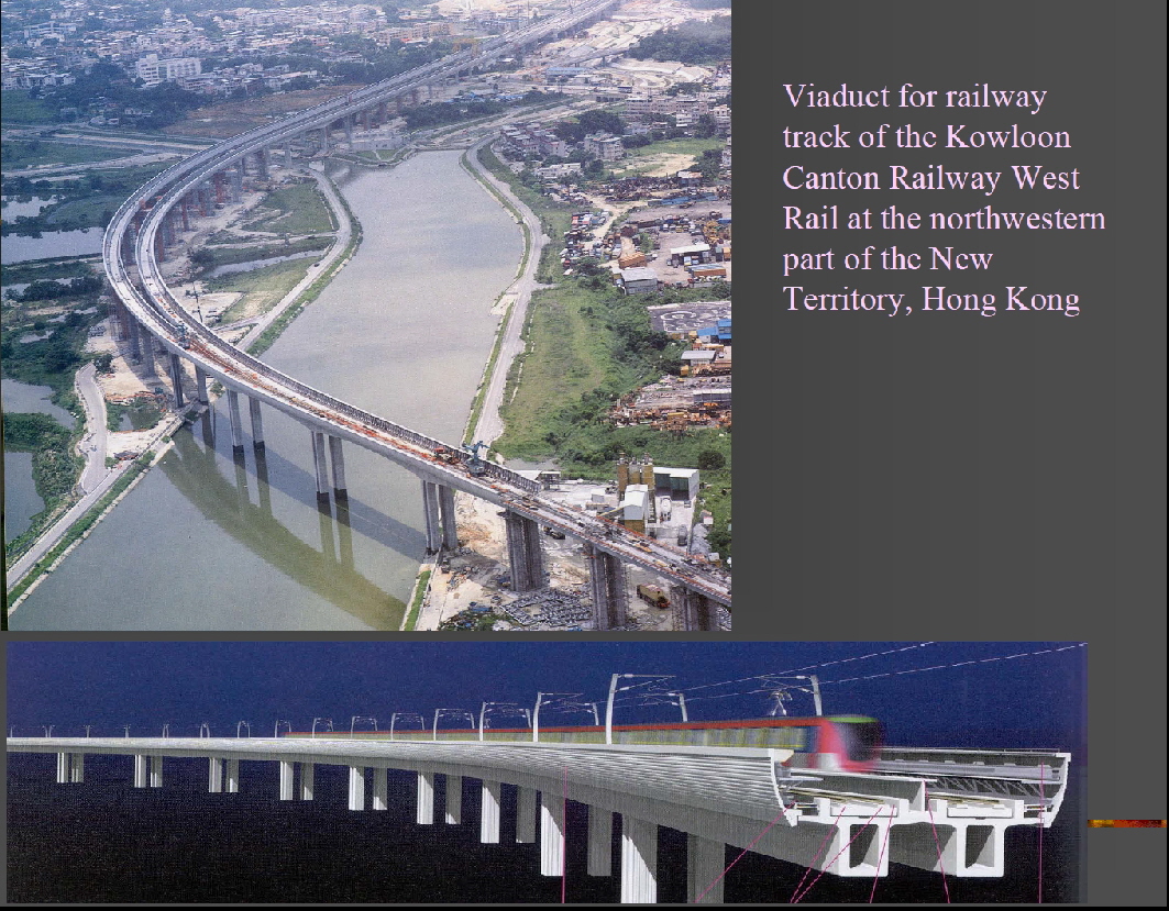 Bauausführung Als Beispiel für die Bauausführung diene die Variante 3. Die Gleisplatte des Hochbahnhofs kann man mittels geeigneter massiver Pfeiler oder Stempel in ihrer höheren Lage halten. Man muss nicht zu einer Brückenlösung greifen. Schalterhalle und Verteilerebene lägen ebenerdig unter den Bahnsteigen und Gleiströgen. Die Heilbronner Straße führt unter der Gleisplatte des Hochbahnhofes hindurch. Zwischen Bonatzbau und Westportal läge die Hochstrecke mit insgesamt 475 m. Im ersten 120 m langen Abschnitt verjüngt sich die Trasse von 40 m auf 10 m Breite. Eine Brückenlösung wäre elegant. Bei diesem Abschnitt könnten aber auch einzelne massive Pfeiler gesetzt werden. Die nachfolgende 255 m lange und 10 m breite zweigleisige Trasse sollte mit High Tech Brückentechnologie gebaut werden. Kein aufgeständerter Fahrweg mit massiven Pfeilern in kurzem Raster, sondern eine schlanke Gleisstrecke, welche den Eindruck von Leichtigkeit vermittelt! Moderne Brückentrassen kann man nicht mit alten Viadukten aus Mauersteinen oder aus Stahl vergleichen. Dazwischen liegen Welten. Je größer die Spannweite, um so eleganter passt sich das Bauwerk in die Stadt ein. Beim Abschnitt zwischen den beiden Parkgebieten ( entlang dem heutigen Verlauf der Schillerstraße) würde sich eine Trasse mit Spannweiten von 40 m gut in das Gelände einfügen. Aber auch 30 m oder selbst 20 m würden noch eine geschmeidige Silhouette ergeben. Die großen Spannweiten und schmalen Pfeiler behindern kaum den Luftstrom. Die Frischluftschneise wird durch eine solche Brückenführung nicht beeinträchtigt. Die Formgebung der Betonelemente einer solchen Trasse muss man in die Hände eines Architekten legen. Raffinierte Beleuchtungseffekte würde man bei einem heutigen Entwurf durch Einbau von LED's in die "Fassadenelemente" einer solchen Trasse realisieren. Eine High Tech Brückentrasse könnte Stuttgart den Touch einer Metropole verleihen. Für die letzten 100 m bis zum Portal des Wagenburgtunnels wäre eine Brückenführung elegant. Als kostengünstige Alternative böte sich für diesen Abschnitt auch eine aufgeständerte Trasse an. Lärmemission Die Talquerung wird ausschließlich von elektrisch betriebenen Personenzügen genutzt. Es poltern keine Güterzüge. Die Geschwindigkeit wird auf der kurzen Hochstrecke 60 km/h nicht übersteigen, denn sie bildet die Bahnhofseinfahrt (bzw. Ausfahrt). Ein ICE ist bis 60 km/h sehr leise. Das Dröhnen unter der Brückentrasse wie auch unter der Gleisplatte des Bahnhofs lässt sich durch modernste Technologien (z.B. Masse-Feder-System) und durch Unterschottermatten stark verringern. Die gesamte Lärmemission wird unter dem Pegel der Schillerstraße mit ihrem Autoverkehr liegen. Stadtbild Die nachfolgenden Bilder zeigen Beispiele moderner Eisenbahnbrücken. Das sind nicht mehr die schwergewichtigen Viadukte aus dem vorigen Jahrhundert.